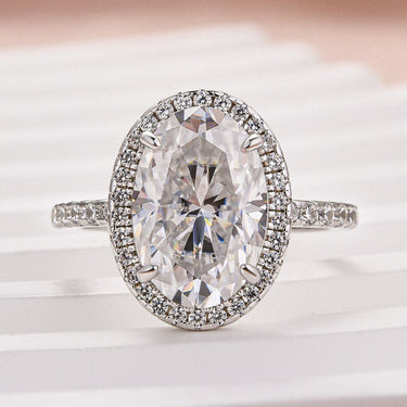 Louily Anello di Fidanzamento Ovalato Halo Taglio a Teresa con Moissanite Esclusivo da 4.0 Carati in Argento Sterling