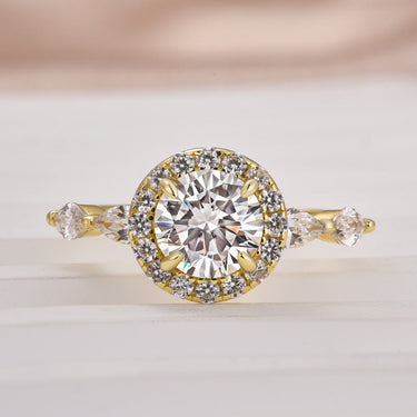 Anello di promessa in oro giallo con moissanite Louily da 1,0 Ct con brillante rotondo a halo