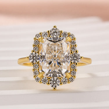 Anello di Fidanzamento Vintage in Moissanite Louily da 3.0 Carati con Halo e Taglio Radiant in Argento Sterling