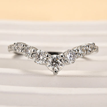 Questo splendido anello presenta un design straordinario che racchiude l'essenza della regalità! Tutto inizia con il brillante oro bianco. Poi gli scintillanti diamanti moissanite vengono incastonati in una particolare fascia curva. La forma dell'anello valorizzerà il tuo anello di fidanzamento. Ogni regina ha bisogno di una corona, così come il suo anello!
