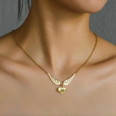 La collana personalizzata Milano Glow® unisce la protezione simbolica delle ali d'angelo al calore di un nome inciso sul cuore. Realizzata in acciaio inossidabile di qualità, questo gioiello è più di un accessorio: è un portafortuna personalizzato che racchiude significati profondi e ricordi preziosi.