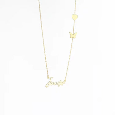 La collana personalizzata Milano Glow® trasforma un nome in un'opera d'arte da indossare. Con il delicato ciondolo a cuore e farfalle, questo gioiello unisce il significato personale all'eleganza senza tempo. Perfetta per te o come regalo indimenticabile per chi ami.