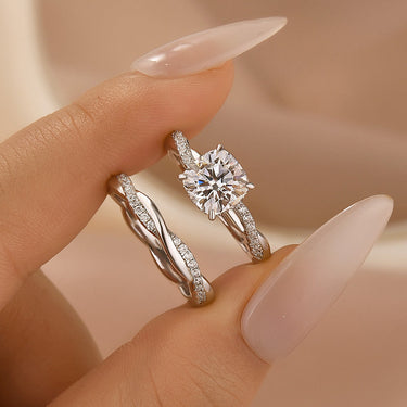Anello da nozze Twist con moissanite da 2,0 carati a forma di cuscino in argento Sterling anello da viaggio