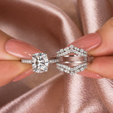 Il set di anelli da matrimonio Moissanite 3.0CT Taglio Cuscino con jacket e fedina impilabile è una perfetta combinazione di bellezza classica e stile contemporaneo. La pietra centrale da 3 carati in moissanite taglio cuscino emana una brillantezza squisita, offrendo un bagliore soffuso e romantico che cattura lo sguardo da ogni angolazione. Completato dalla delicata fedina aggiuntiva impilabile, questo set dona un ulteriore tocco di eleganza, valorizzando il tutto con dettagli intricati e dal design senza tempo.