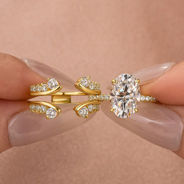 Anello di Nozze in Oro Giallo con Taglio a Goccia di Moissanite da 4.0 Ct con Anello Enhancer
